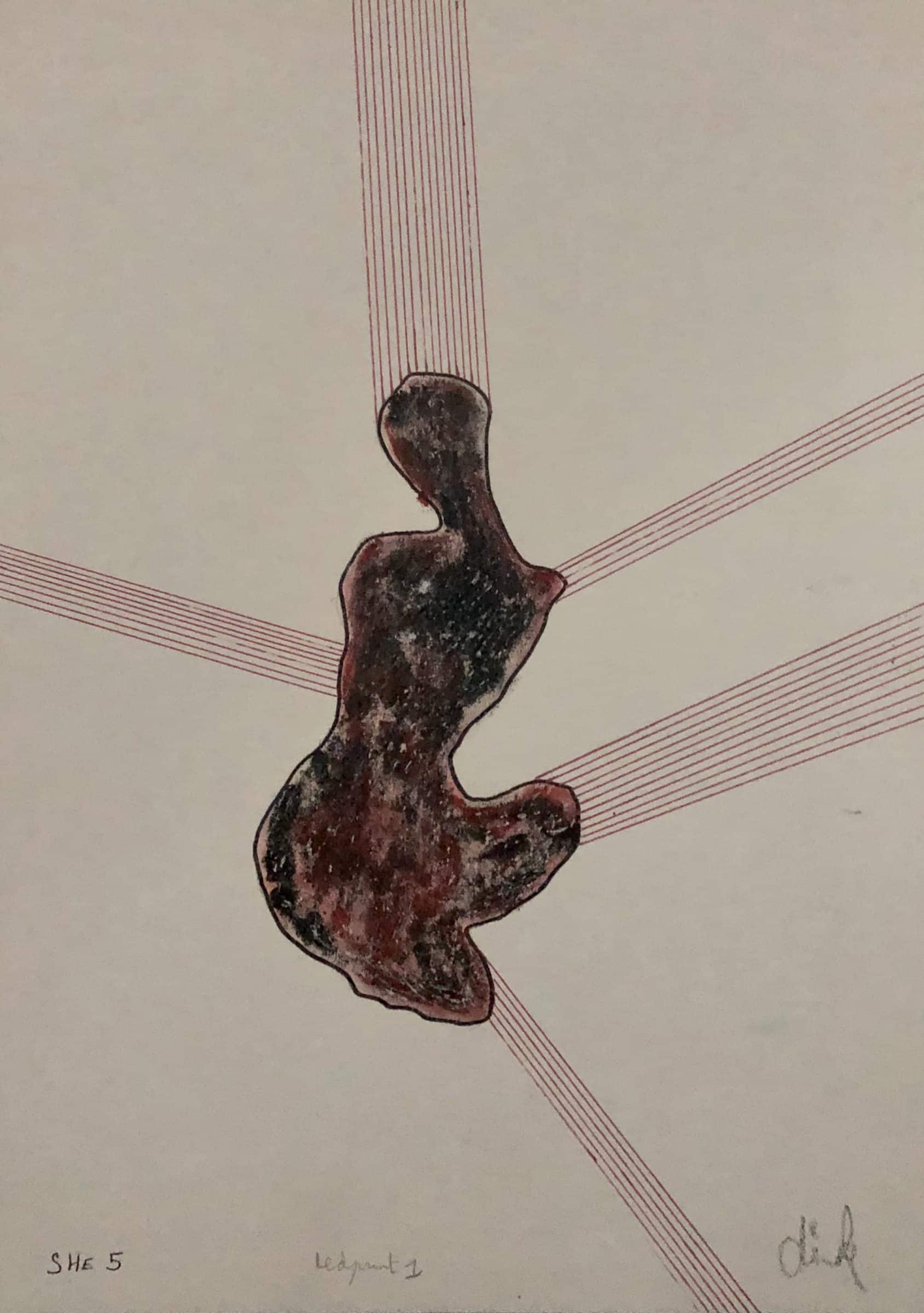 “She 5” is a work by Flemish actor and painter Dirk Celis, executed in acrylic and marker on cardboard from 2006.