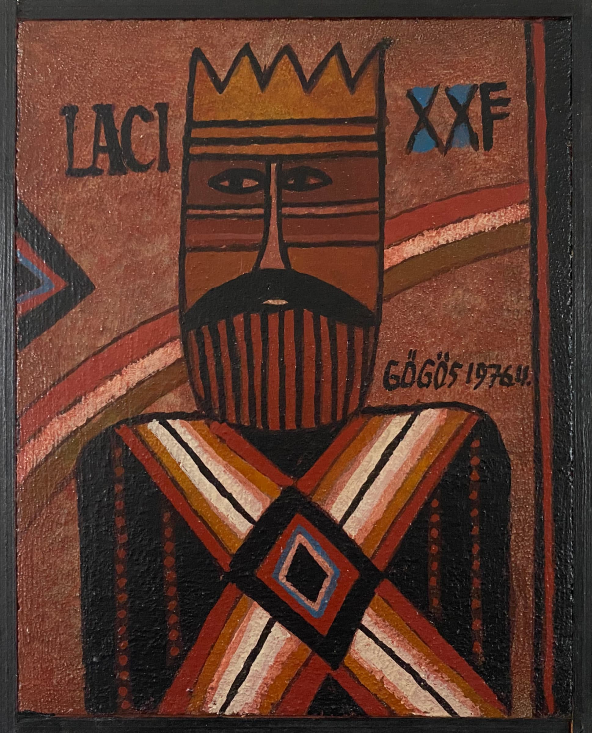 “Laci XXF” is een werk in acrylverf op hardboard van de Hongaars-Nederlandse kunstenaar Ferenc Gögös met eigen lijstwerk.