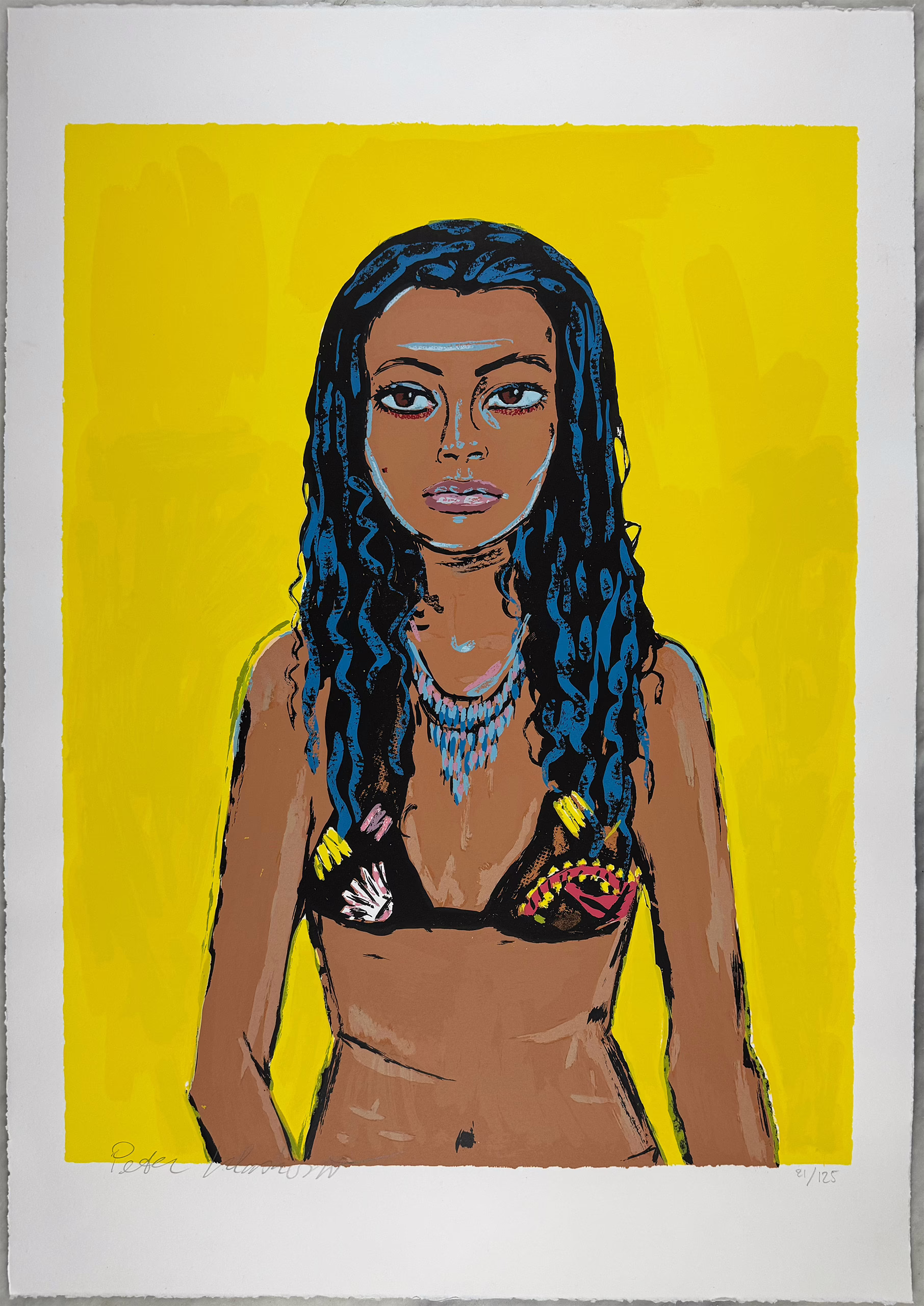 ‘My Yellow princess’ is een grote zeefdruk van de hand van Peter klashorst. De zeefdruk is handgesigneerd en verscheen in een kleine oplage. Dit is nummer 21 van 125.