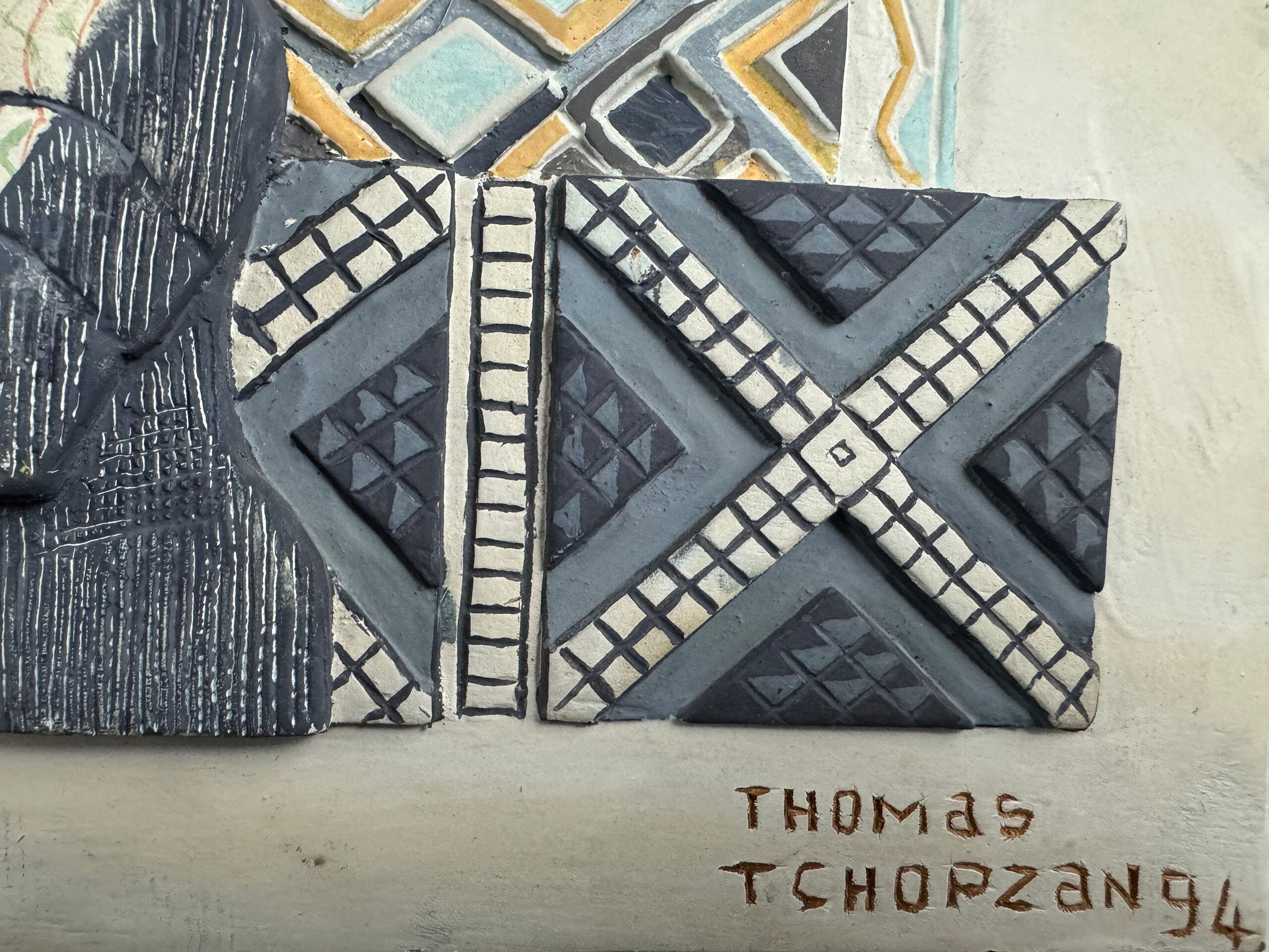 “Centrale Bank Guinee 100 Frs”, voorzijde is een hardhout gesneden en beschilderd bankbiljet van de bekende Kameroenese kunstenaar Thomas Tchopzan op groot formaat. U krijgt het oorspronkelijke biljet waarnaar het werk is gesneden erbij. In onze galerie is ook de achterzijde van het 500 Frs CFA biljet beschikbaar.