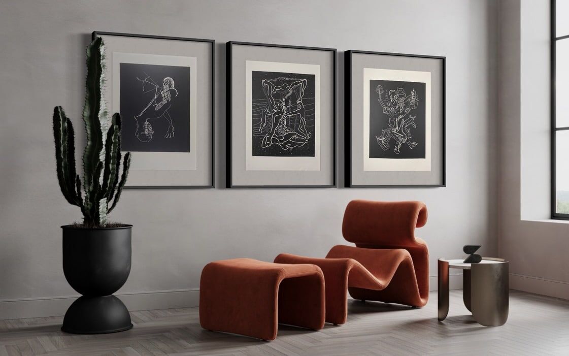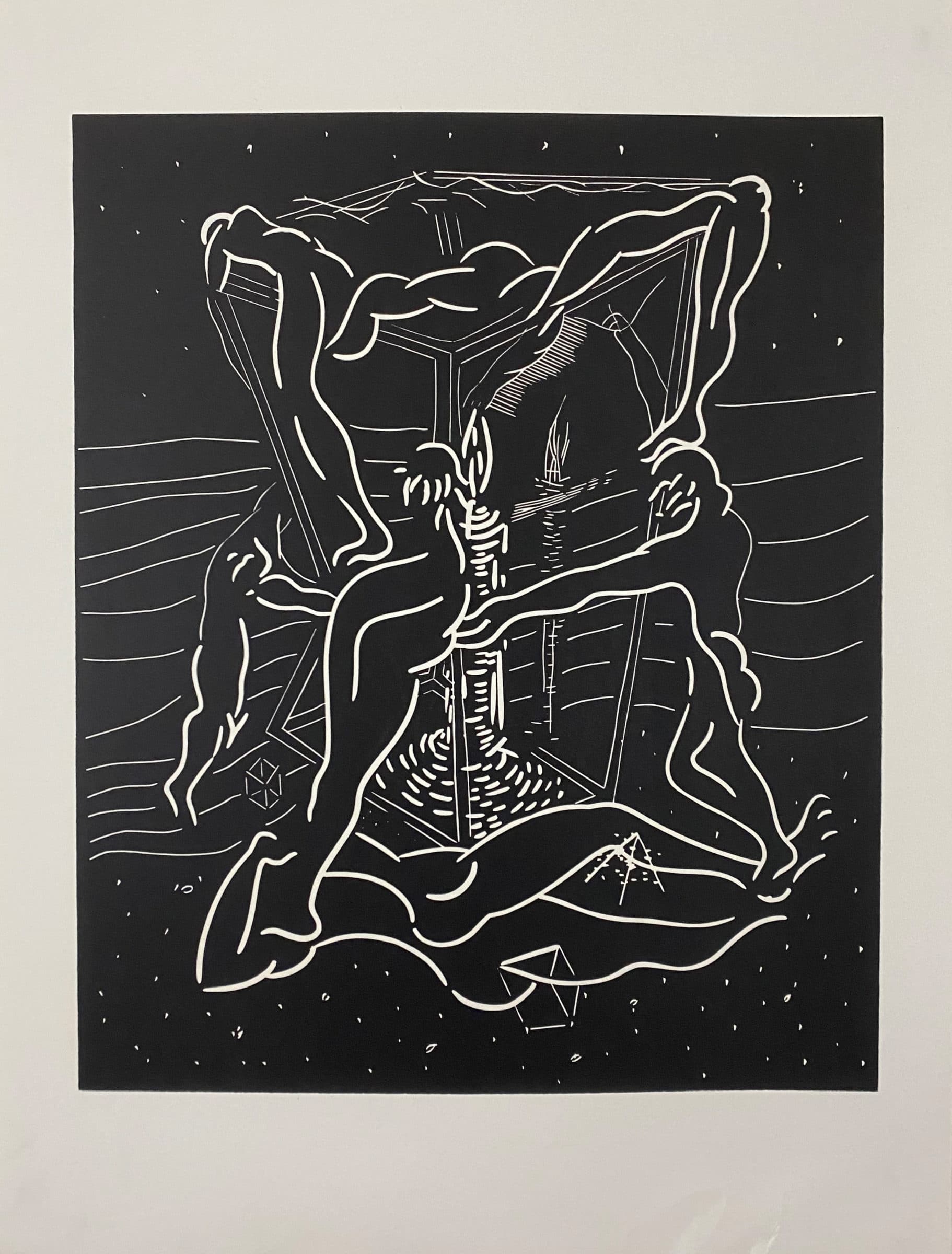 “Männerlicht am strand” is een grote linosnede van de bekende kunstenaar Thomas van der Linden in zwart-wit uit de serie: “So passionata”.