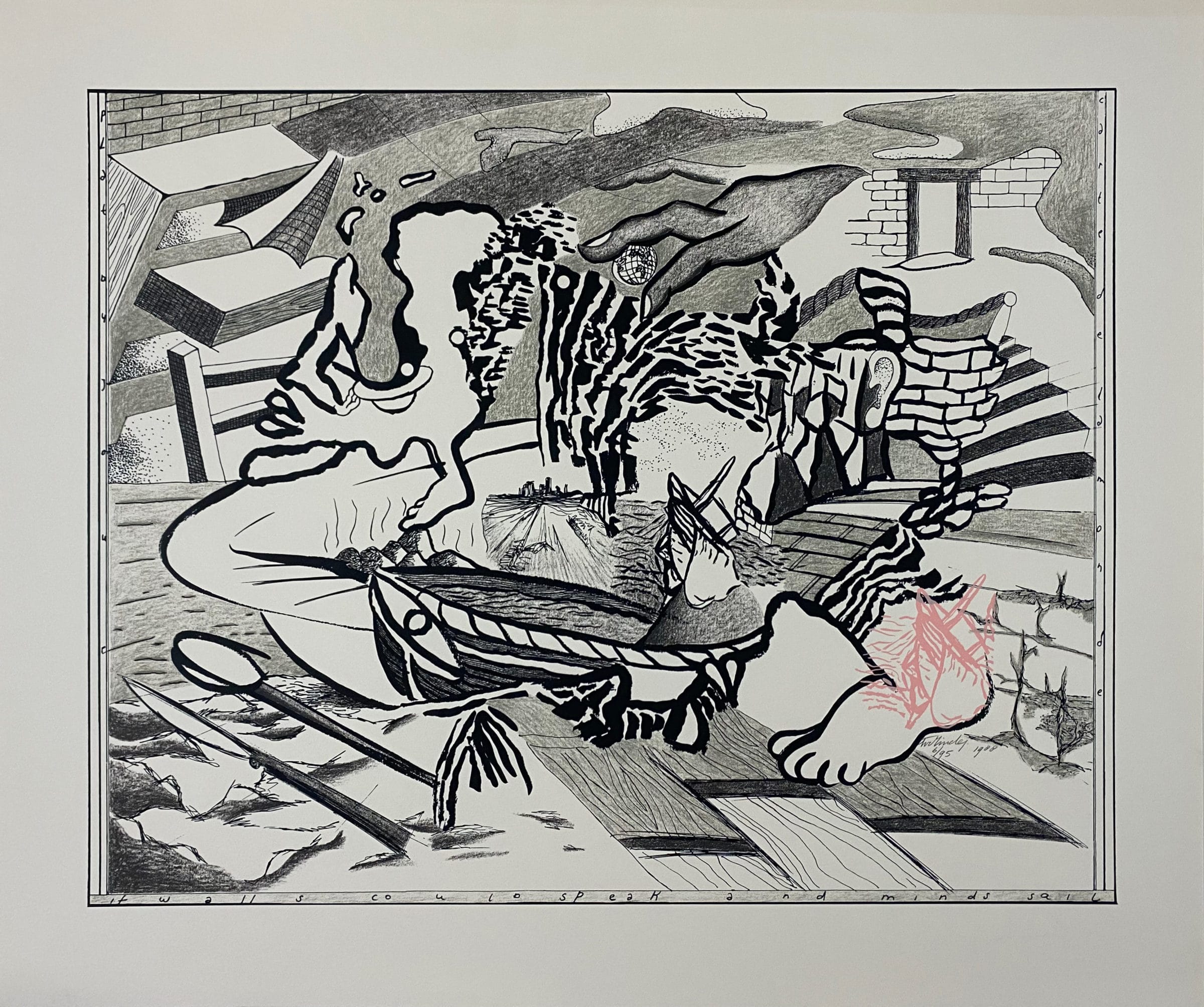 In de onderste marge staat:”If walls could speak and minds sail”.