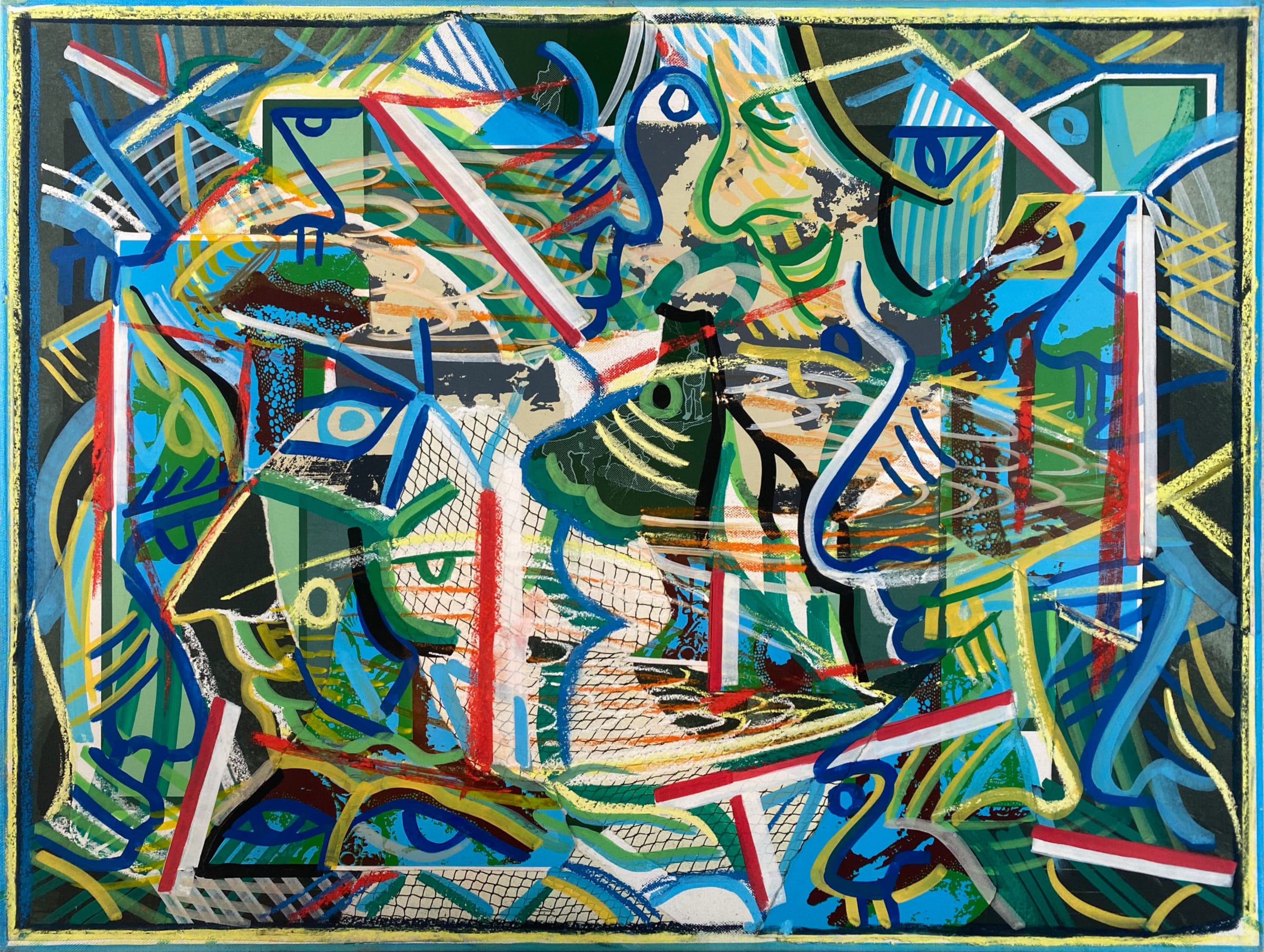 THOMAS VAN DER LINDEN – ‘Blauw + Groen Coulissen’ – gemengde techniek op doek